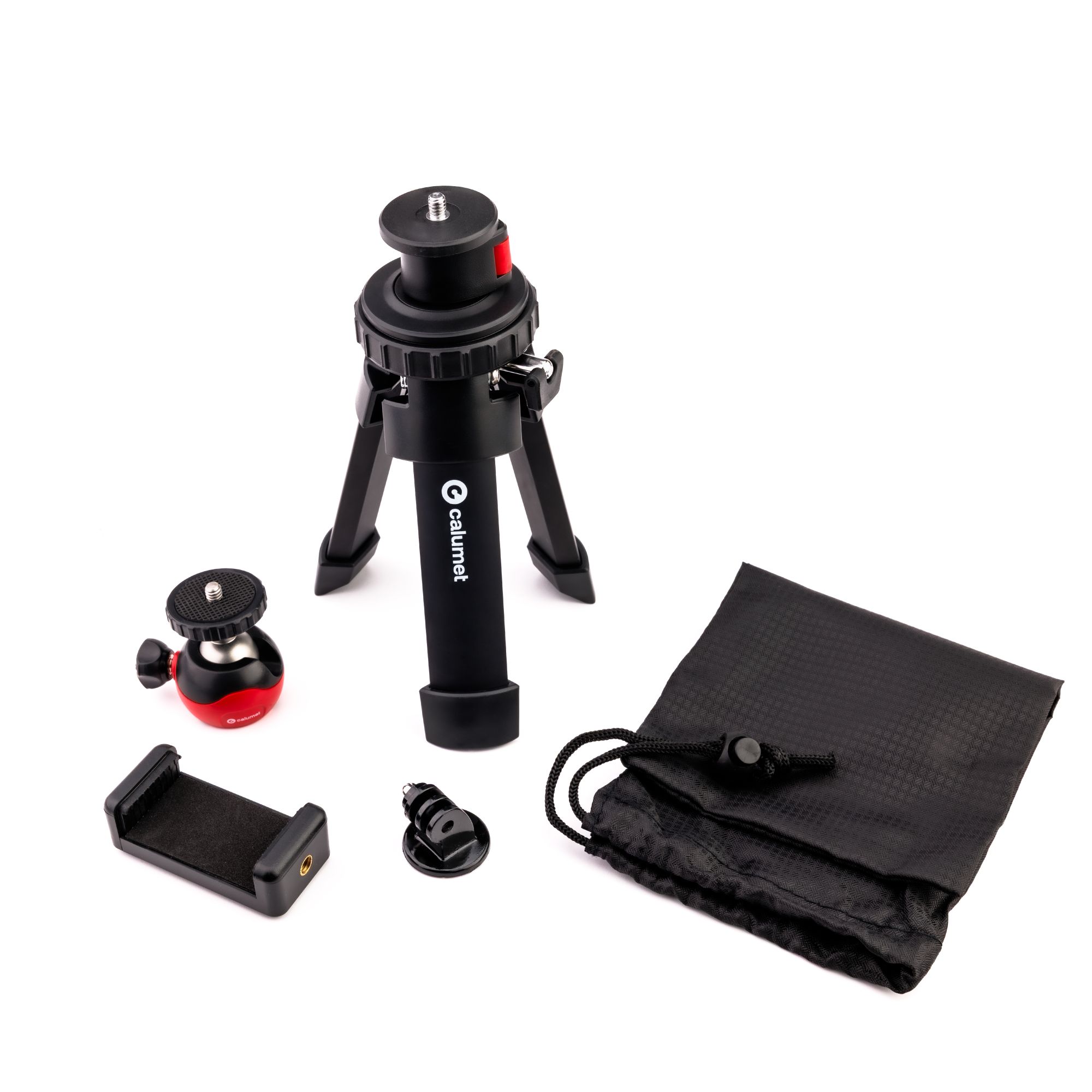 Stativ je vybaven mini kulovou hlavou Calumet MT-B24, která poskytuje plnou flexibilitu při komponování záběru: